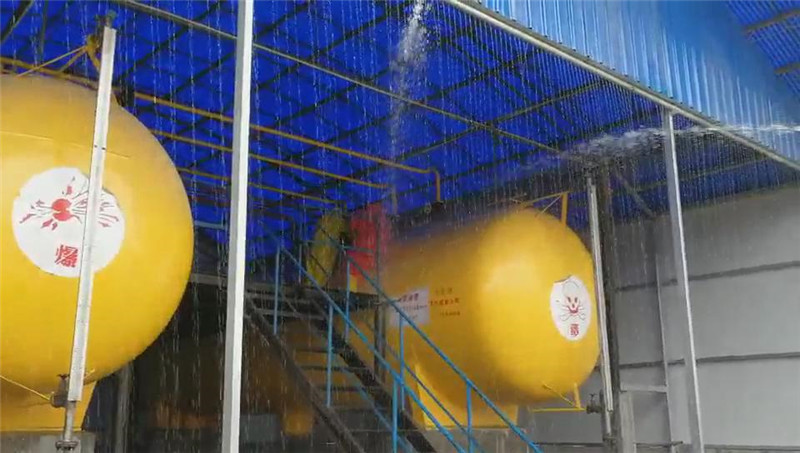 6月21日上午10時,隨著焦作市地豐肥業(yè)有限公司上空警報器拉響,發(fā)現(xiàn)“險情”的氨站工作人員周立榮、王馬對手提防毒面具趕到現(xiàn)場進(jìn)行檢查,在2號氨罐聞到氨味后,迅速佩戴防毒面具走進(jìn)巡查,發(fā)現(xiàn)2號氨罐頂部出口有大量液氨泄漏,立即判斷為氨罐出口閥閥體破裂造成液氨泄漏,趕緊向班長陳新政報告,氨站操作人員迅速打開安全應(yīng)急水幕噴淋,由此拉開了公司液氨泄漏應(yīng)急演練的序幕。